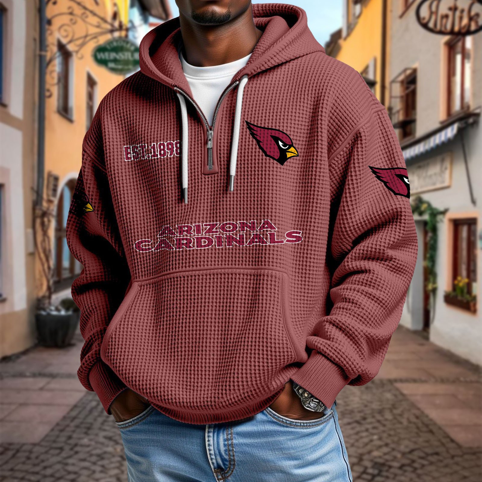 Stay effortlessly stylish and comfortable with this premium waffle-textured hoodie. Designed with a relaxed fit and soft, breathable fabric, it’s perfect for layering or wearing on its own. The half-zip front and adjustable drawstring hood add modern versatility, while the kangaroo pocket keeps your hands warm and essentials close.
