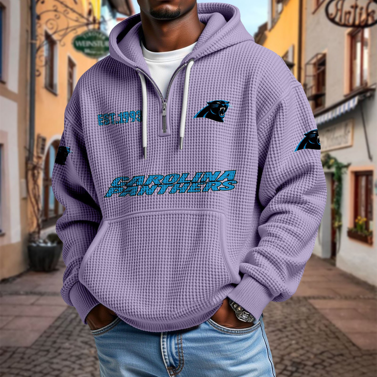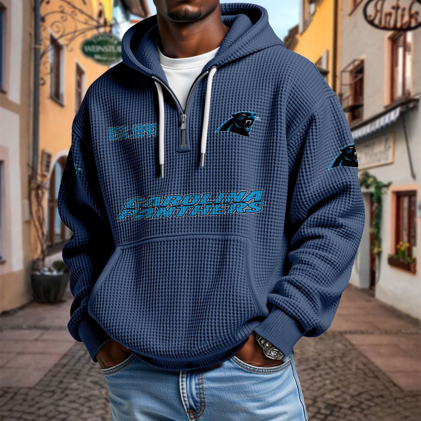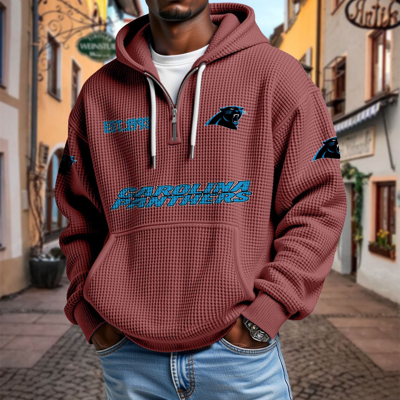 Stay effortlessly stylish and comfortable with this premium waffle-textured hoodie. Designed with a relaxed fit and soft, breathable fabric, it’s perfect for layering or wearing on its own. The half-zip front and adjustable drawstring hood add modern versatility, while the kangaroo pocket keeps your hands warm and essentials close.