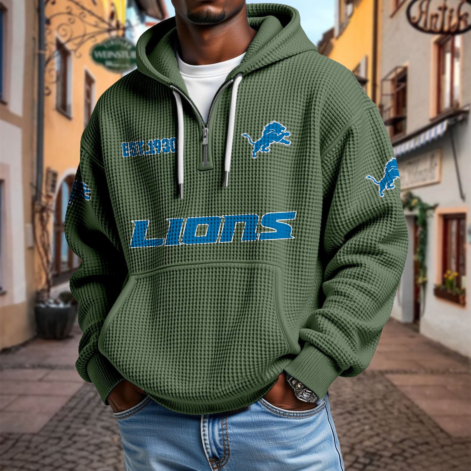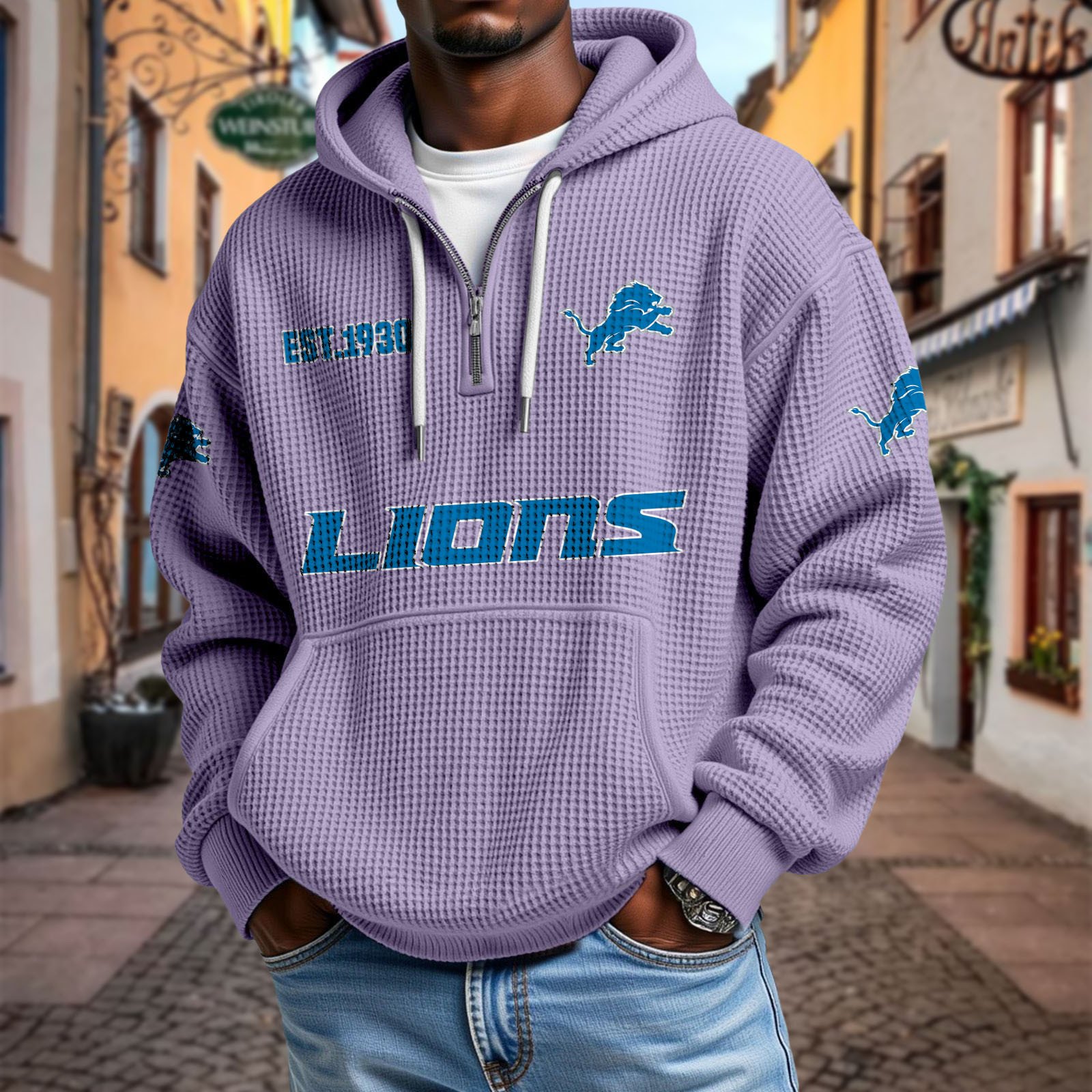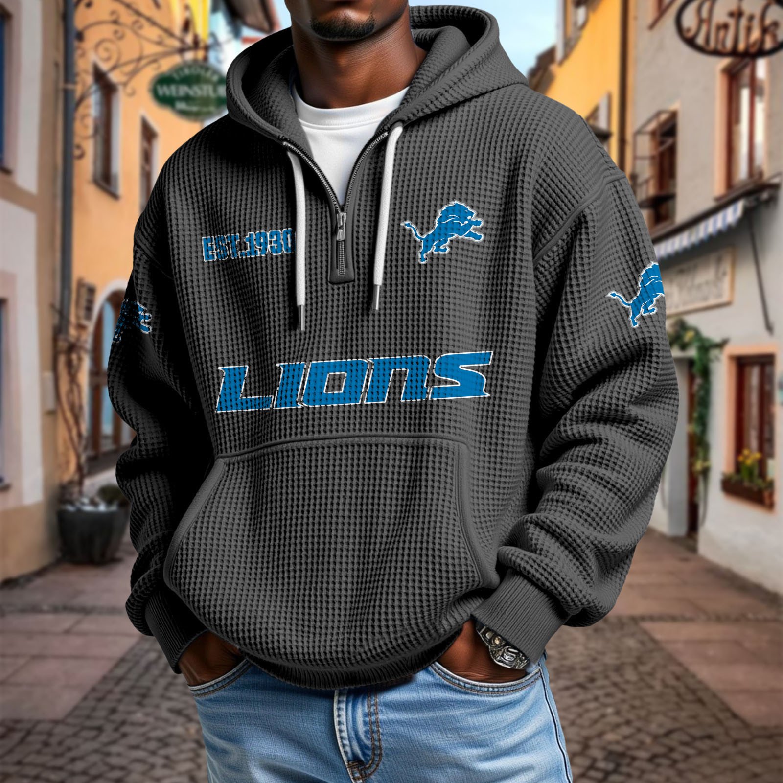 Stay effortlessly stylish and comfortable with this premium waffle-textured hoodie. Designed with a relaxed fit and soft, breathable fabric, it’s perfect for layering or wearing on its own. The half-zip front and adjustable drawstring hood add modern versatility, while the kangaroo pocket keeps your hands warm and essentials close.
