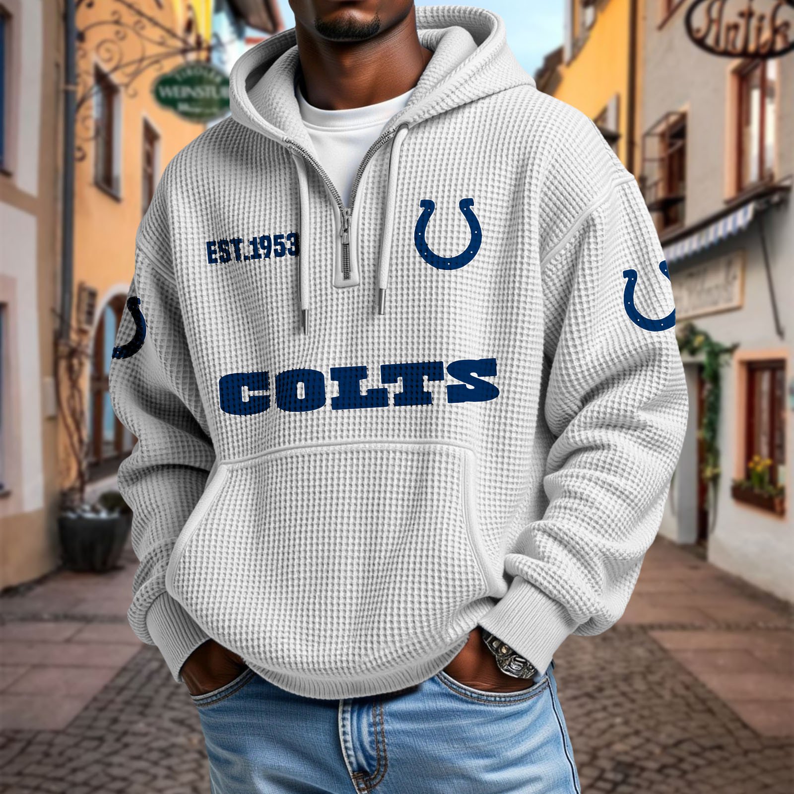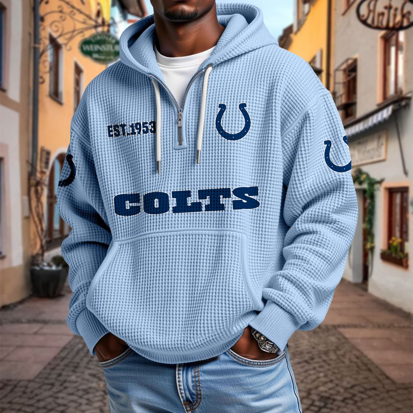 Stay effortlessly stylish and comfortable with this premium waffle-textured hoodie. Designed with a relaxed fit and soft, breathable fabric, it’s perfect for layering or wearing on its own. The half-zip front and adjustable drawstring hood add modern versatility, while the kangaroo pocket keeps your hands warm and essentials close.