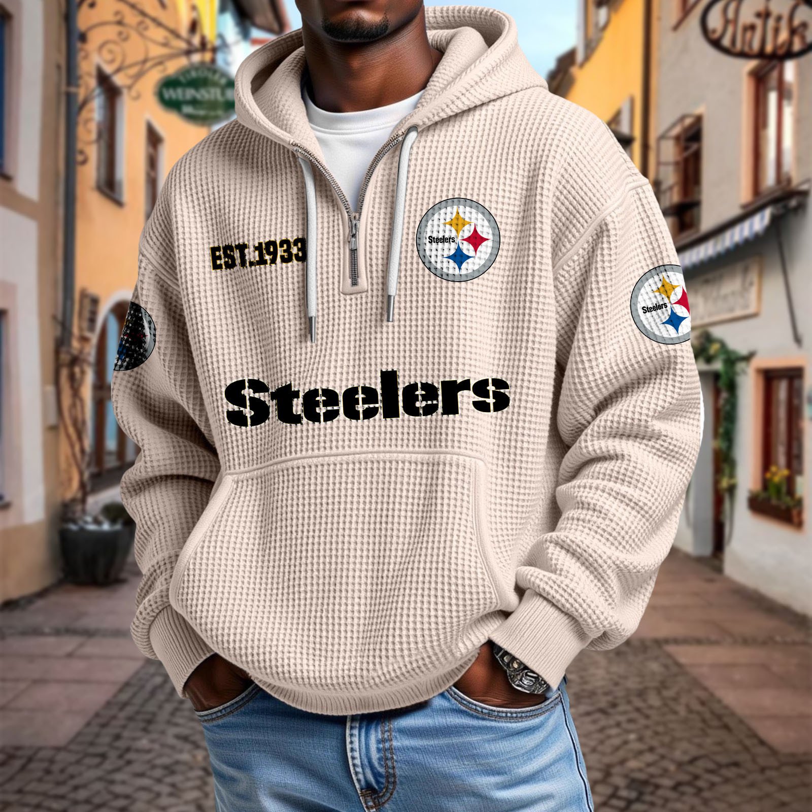 Stay effortlessly stylish and comfortable with this premium waffle-textured hoodie. Designed with a relaxed fit and soft, breathable fabric, it’s perfect for layering or wearing on its own. The half-zip front and adjustable drawstring hood add modern versatility, while the kangaroo pocket keeps your hands warm and essentials close.